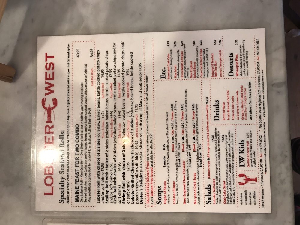 Lobster West Menu